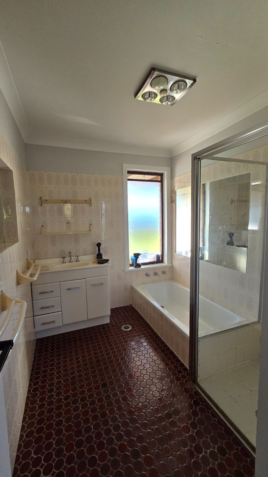 We were excited when we received this brief from our client at Marsden Terrace. The client wanted to improve functionality and modernise their main bathroom and powder room spaces to better align with the rest of the already renovated home but very importantly still show personality. Side note: we’ve seen those exact orignal red mosaic tiles before in a renovation – they must have been very common the MidNorth Coast in the 70’s.