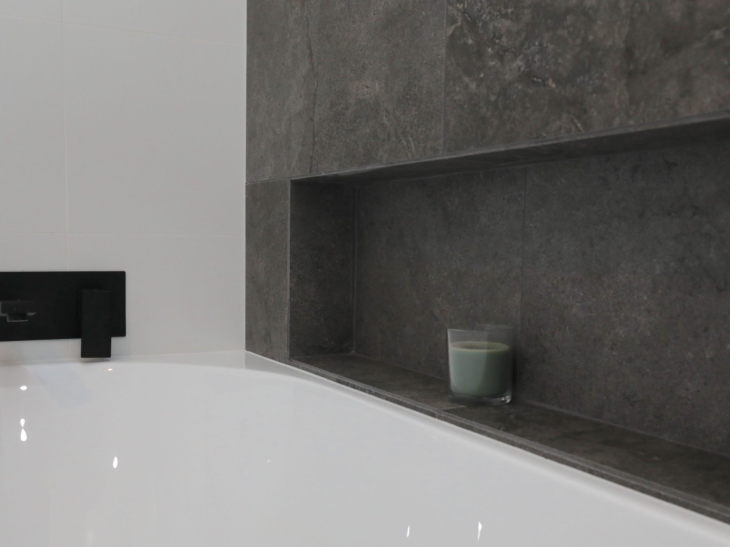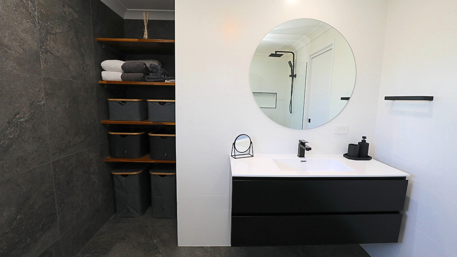 With this renovation our clients knew exactly what they were after and even HAND CRAFTED their own vanity bowl (now, you cannot say that isn’t impressive!), which paired beautifully with the selected feature wall tiles laid in a basket weave pattern!